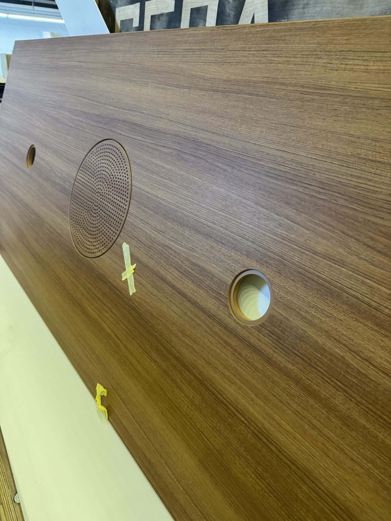 We were asked to complete various deckheads onboard this 110m+ new build project in Holland using a 3M Di-Noc teak finish as an alternative to real teak. This approach allowed the design intent of natural teak to be achieved while offering greater consistency, reduced weight and significantly lower maintenance requirements. The Di-Noc finish provides excellent durability and visual uniformity across large areas, making it particularly well suited to new build environments where long-term upkeep, performance and programme efficiency are key considerations.