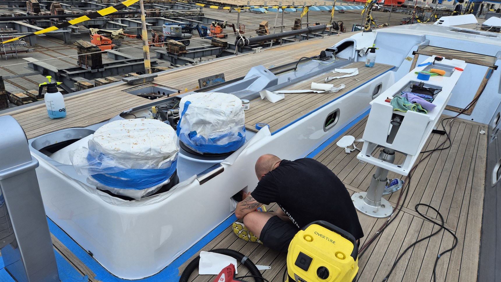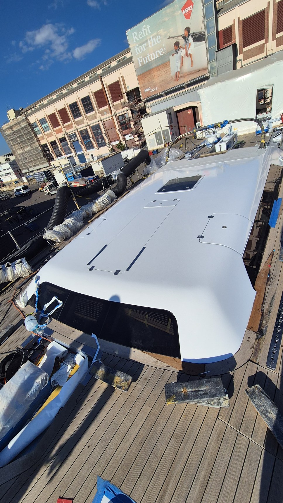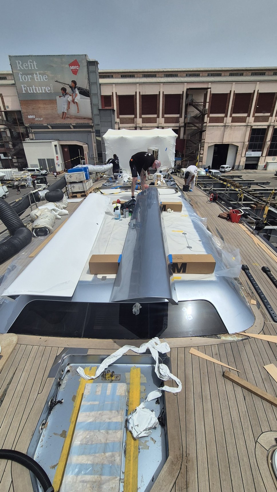 Our team successfully completed a deck housing colour transformation onboard the prestigious S/Y MAGIC BLUE, a renowned sailing yacht celebrated for its sleek design and performance. This project involved expertly changing the deck housing from silver to white using high-quality yacht vinyl wrapping techniques. By utilising premium marine-grade vinyl films, we achieved a flawless, durable finish that enhances the yacht’s aesthetic appeal while providing a protective layer against the elements. Our superyacht wrapping services offer a cost-effective and reversible alternative to traditional paint, ensuring a seamless and efficient refit with minimal downtime.
