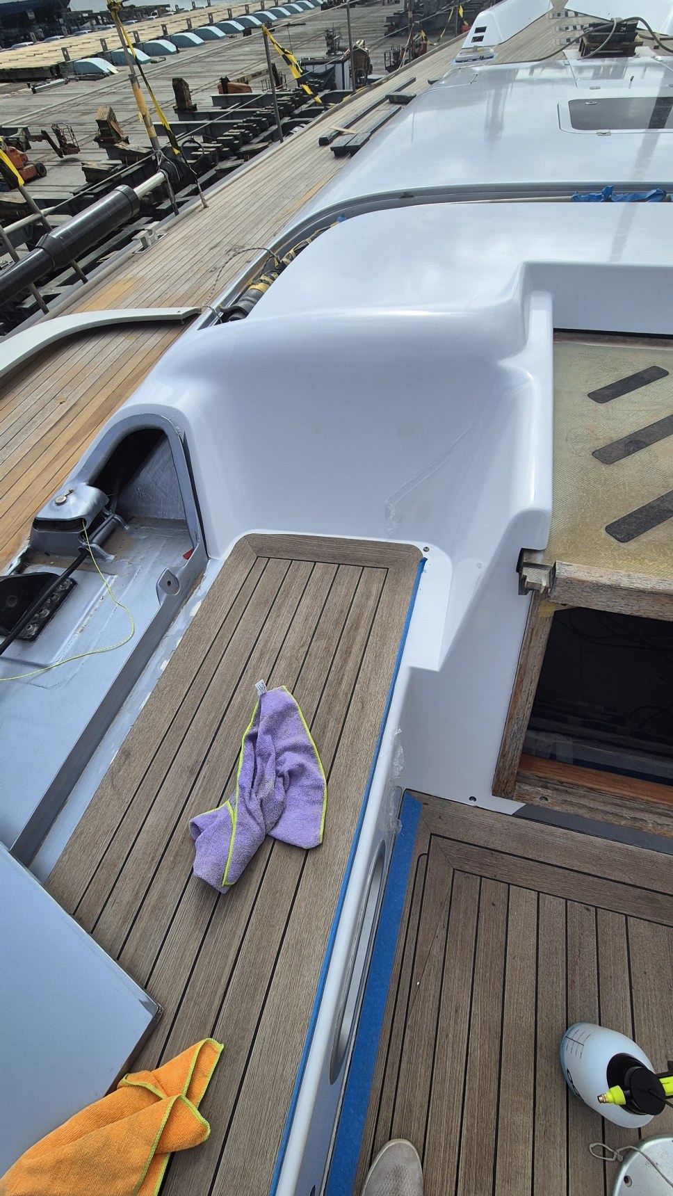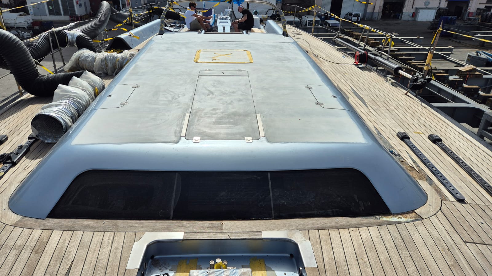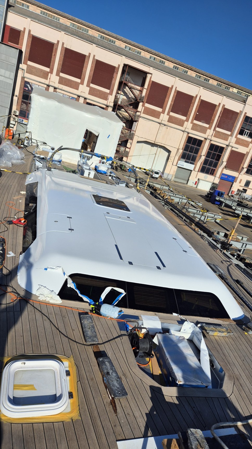 Our team successfully completed a deck housing colour transformation onboard the prestigious S/Y MAGIC BLUE, a renowned sailing yacht celebrated for its sleek design and performance. This project involved expertly changing the deck housing from silver to white using high-quality yacht vinyl wrapping techniques. By utilising premium marine-grade vinyl films, we achieved a flawless, durable finish that enhances the yacht’s aesthetic appeal while providing a protective layer against the elements. Our superyacht wrapping services offer a cost-effective and reversible alternative to traditional paint, ensuring a seamless and efficient refit with minimal downtime.