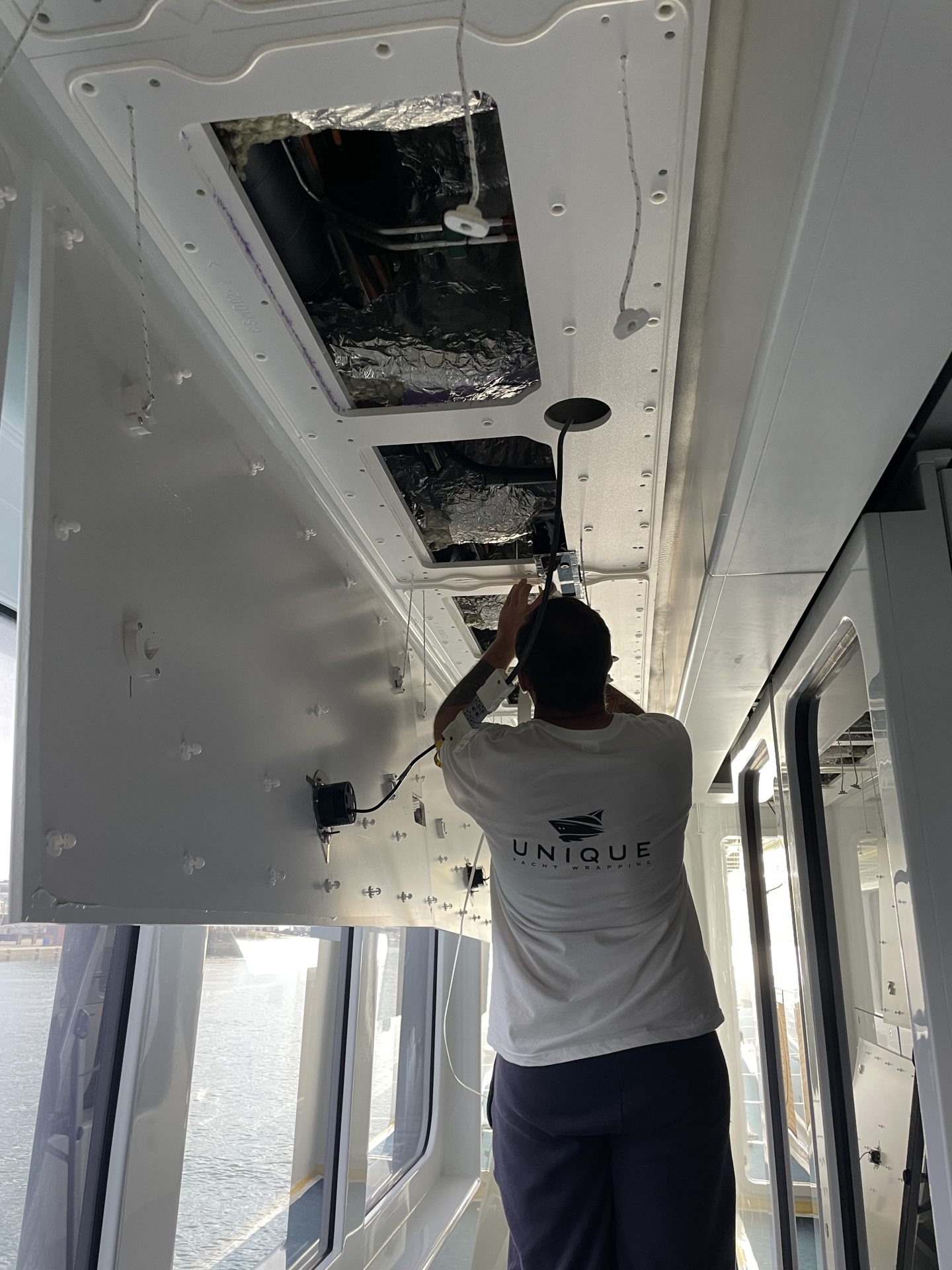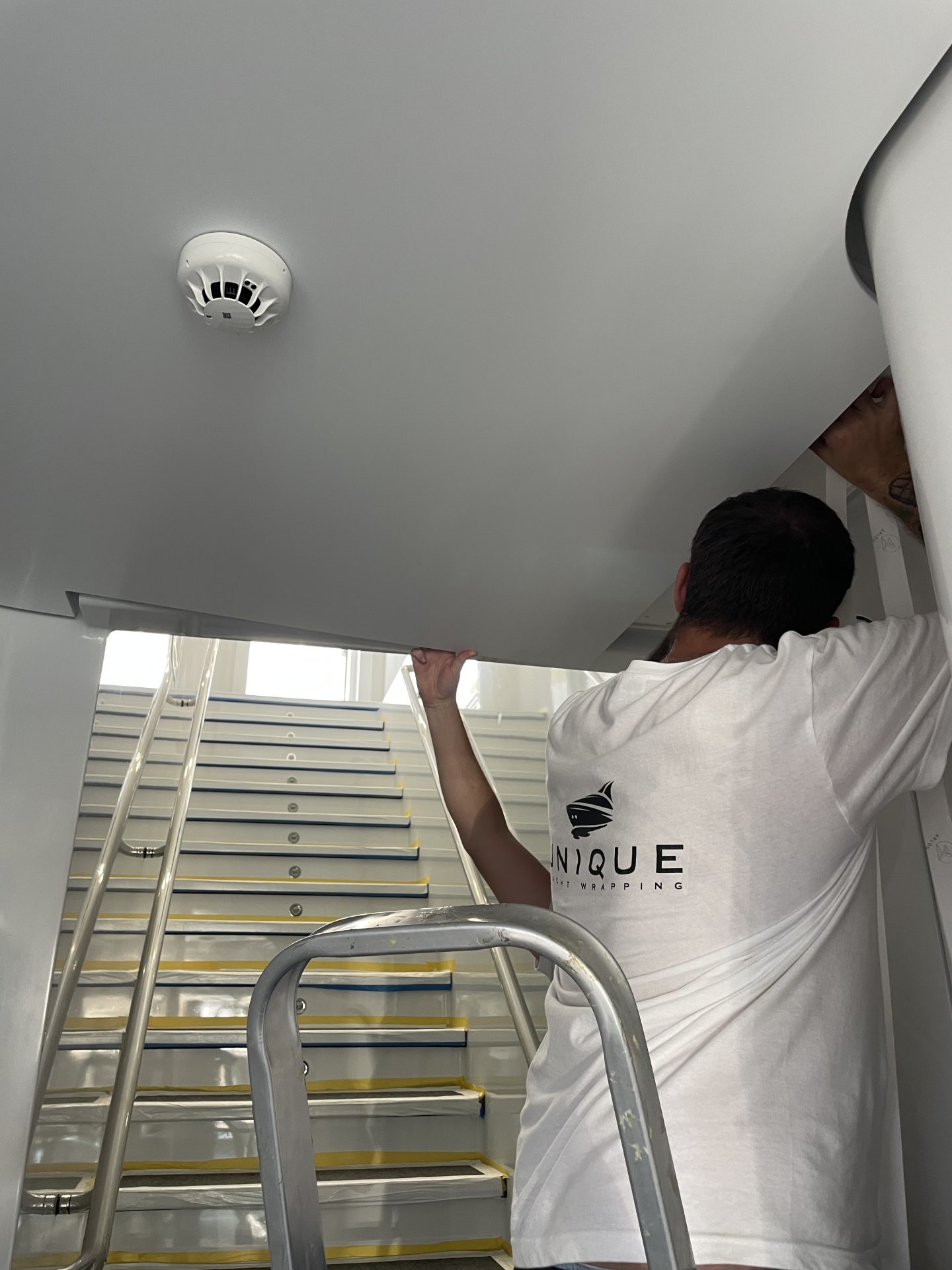 To enquiry about deckhead wrapping for your yacht, please email: info@uniqueyachtwrapping.com
